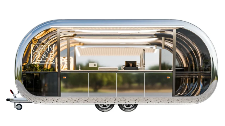 Model SHINE QUANTUM to nowa definicja mobilnej gastronomii. Połączenie nowoczesnej formy, luksusowego wykończenia oraz najwyższej jakości stali nierdzewnej tworzy przyczepę, która nie tylko ułatwia pracę, ale także wyróżnia Twój biznes w każdej przestrzeni – od miejskich deptaków po najbardziej prestiżowe eventy.
