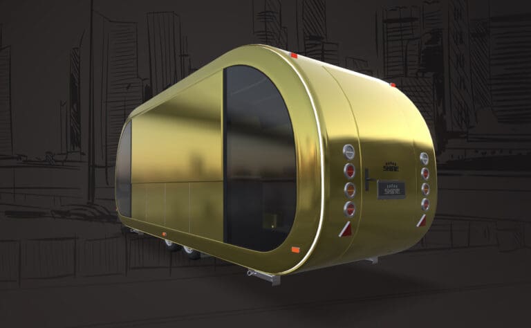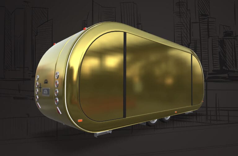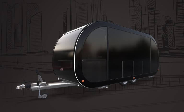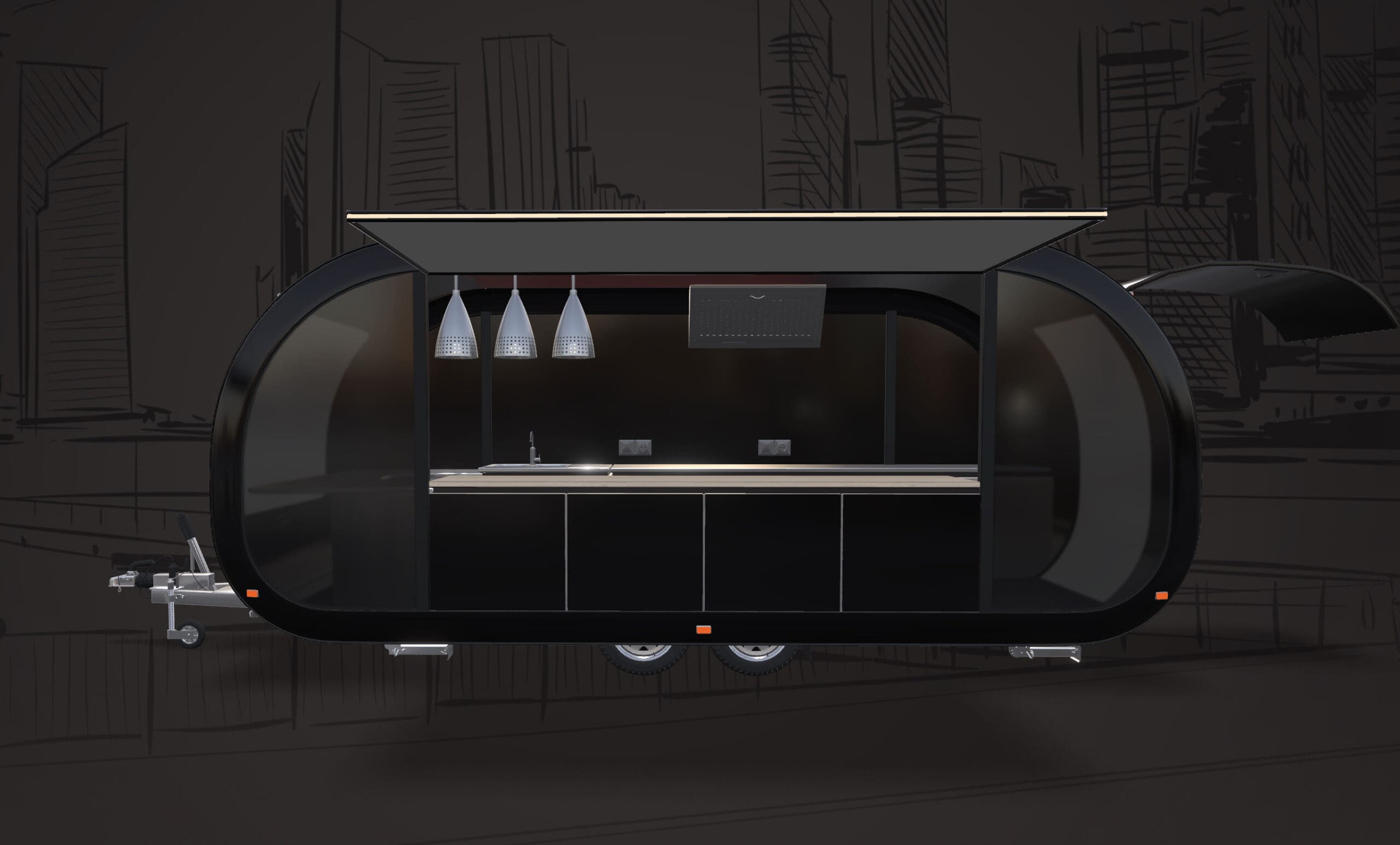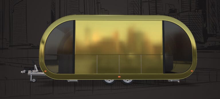 Model QUANTUM S to efektowne połączenie panoramicznych przeszkleń i opływowej bryły. W tej wersji przyczepa dostępna jest w dwóch ekskluzywnych, wersjach: złotej lub czarnej. Dzięki temu staje się ona spójnym i niezwykle wyrazistym elementem wizerunku Twojej marki.